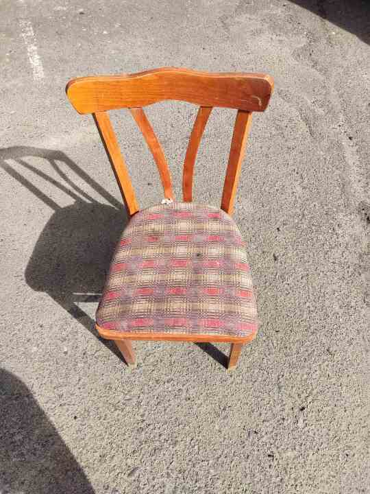 Стільчик м'який бежевого кольору з дерев'яною спинкою, бувший у використанні в задовільному стані.