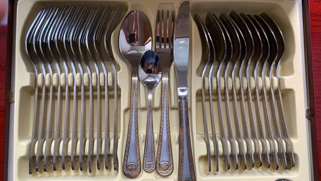 Майно конфісковане за рішенням суду : дерев'яна скринька червоного кольору з набором столових приборів , Любомльського районного суду Волинської області №163/2688/24 від 10.01.2025 року